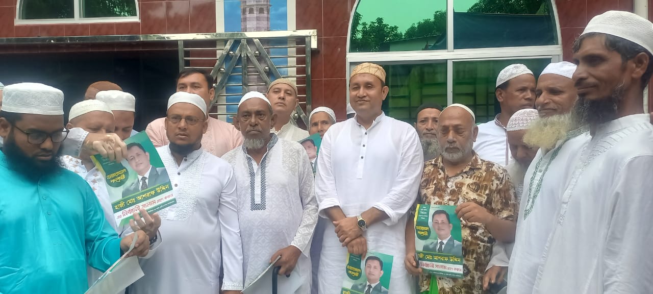 সভা শেষে হাজী আশরাফ উদ্দিন মসজিদে নামাজ আদায় করেন এবং মুসুল্লিদের মধ্যে নির্বাচনী লিফলেট বিতরণ করেন।